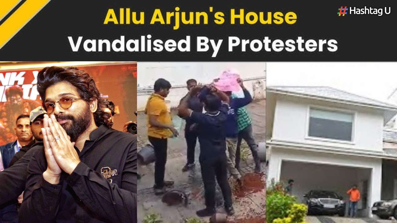A case has been filed against six members of the Osmania University Joint Action Committee (OU-JAC) for reportedly vandalizing actor Allu Arjun’s residence. The incident occurred in the wake of the controversy surrounding the Sandhya Theatre tragedy. The incident occurred around 4:45 pm, when a group of protesters gathered outside actor Allu Arjun’s residence in Jubilee Hills. Holding placards and chanting slogans, one of the demonstrators climbed the compound wall and began throwing tomatoes.